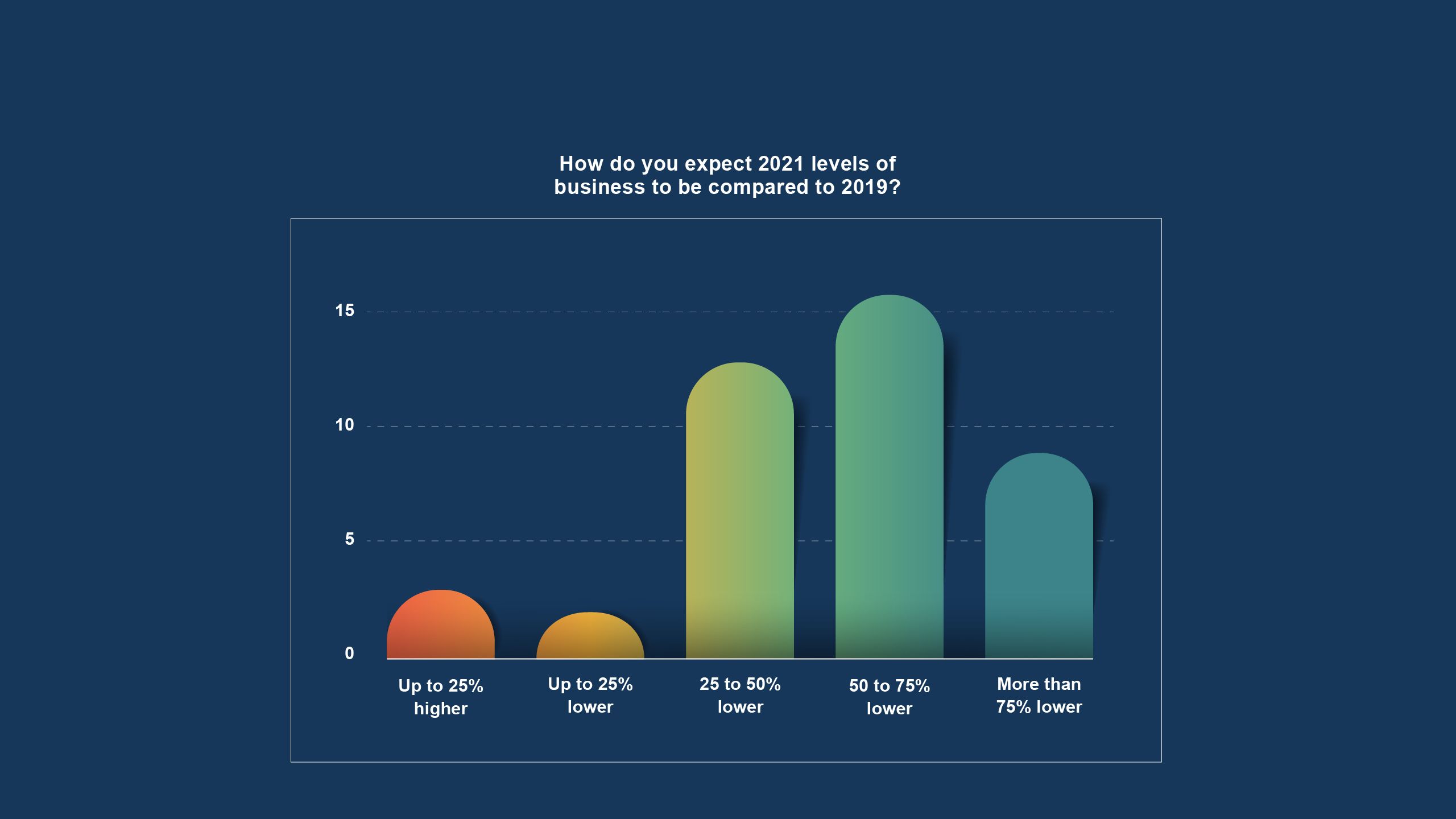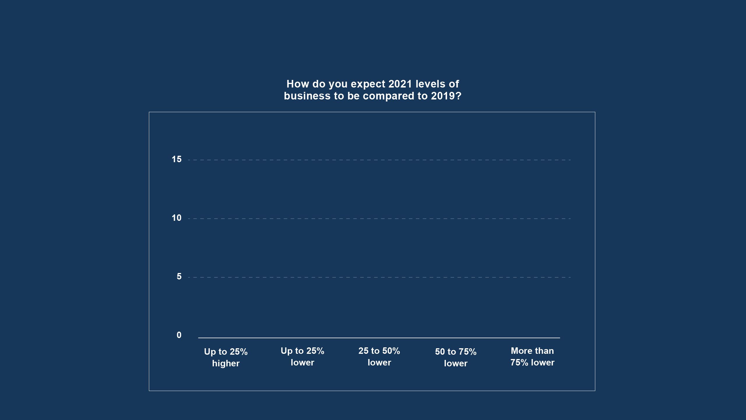As always, we have asked the TMCs in our survey to think about what the current year holds for them. There has been plenty of discussion both in the industry and beyond about when – or whether – business travel will return to 2019 levels. We asked the TMCs for their thoughts on 2021 compared to the 2019 baseline – most believe that the recovery is not happening any time soon.
