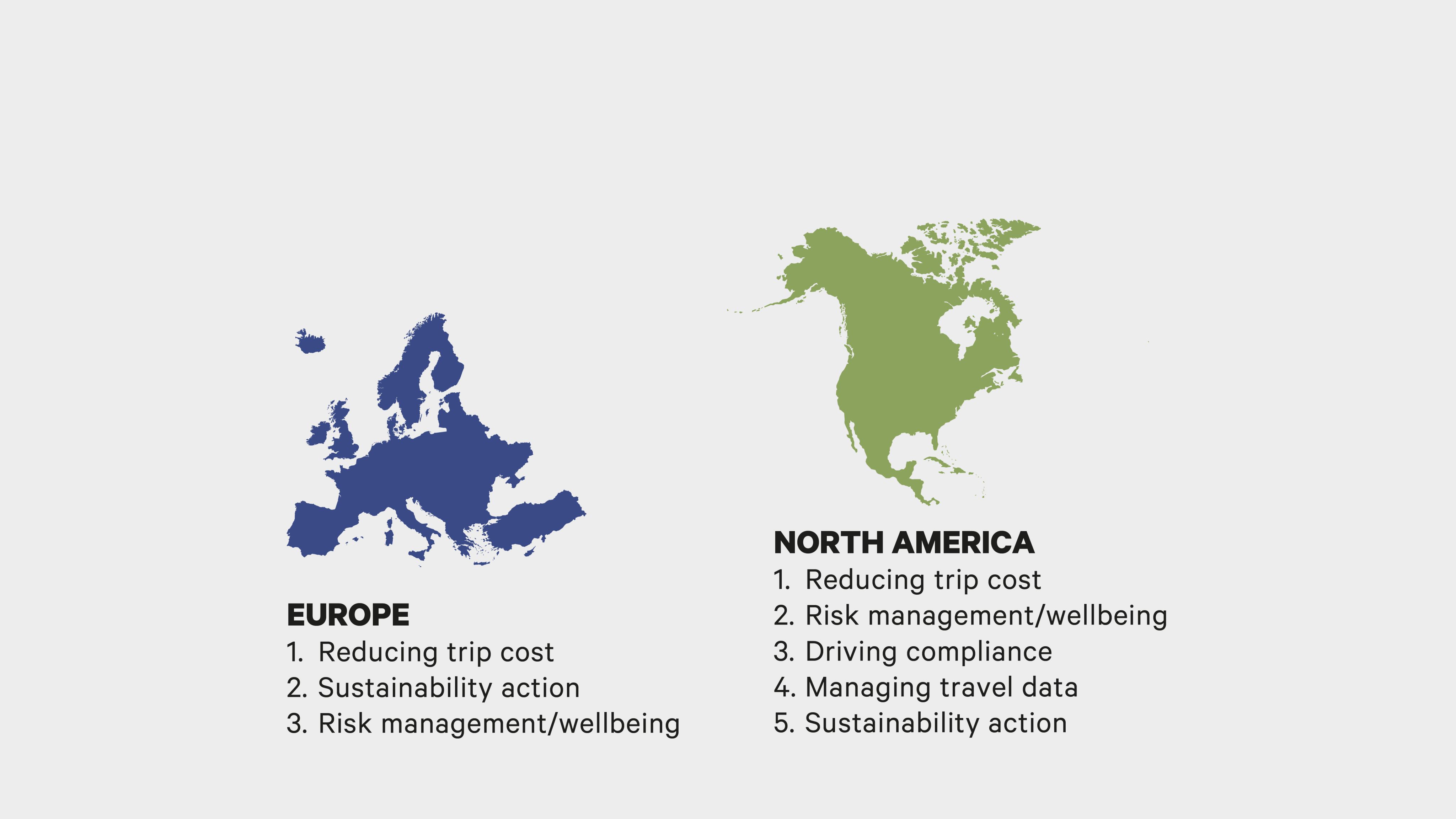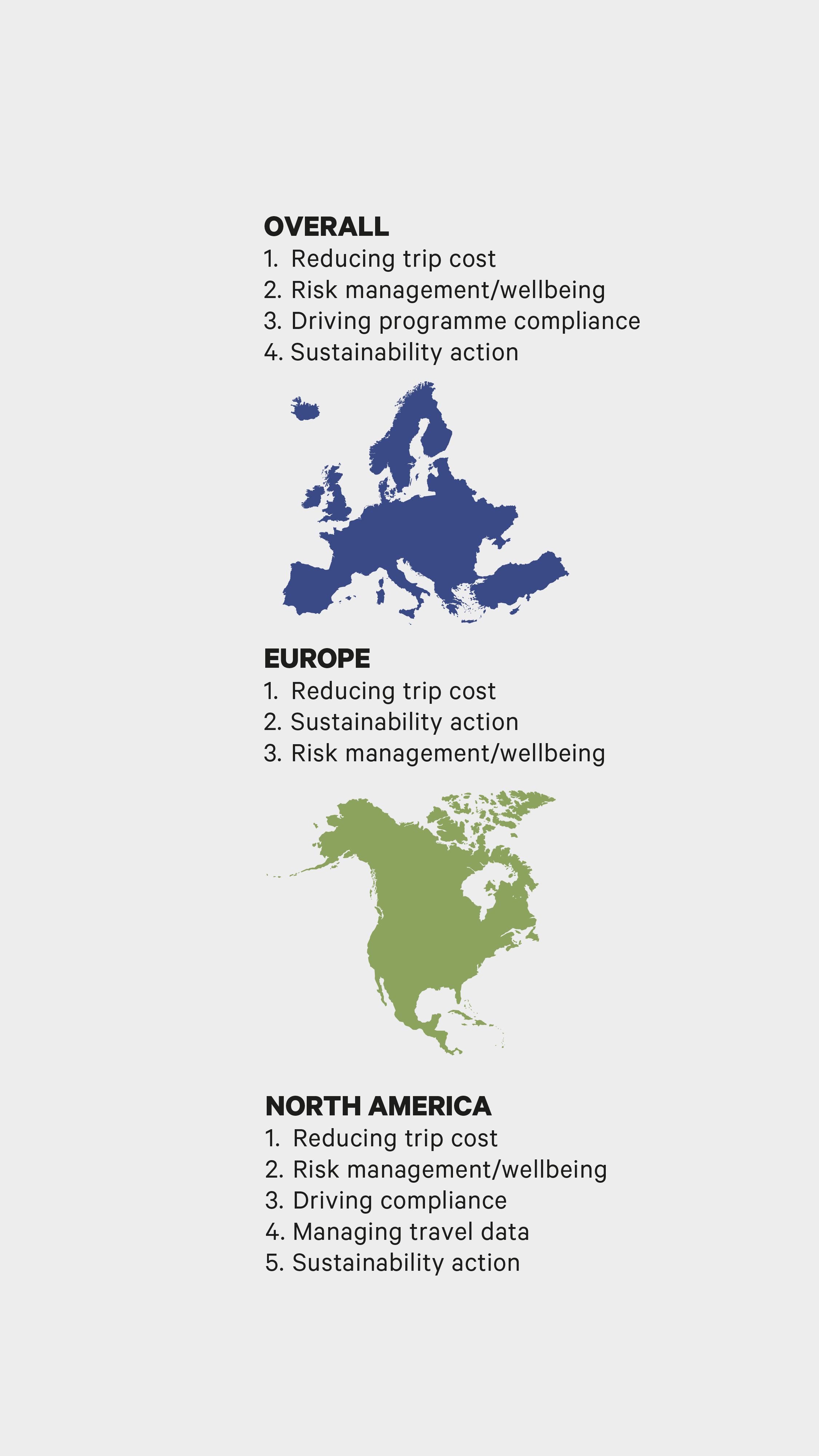 Travel managers’ priorities in Europe and in North America are similar but with one key difference – their stance on sustainability