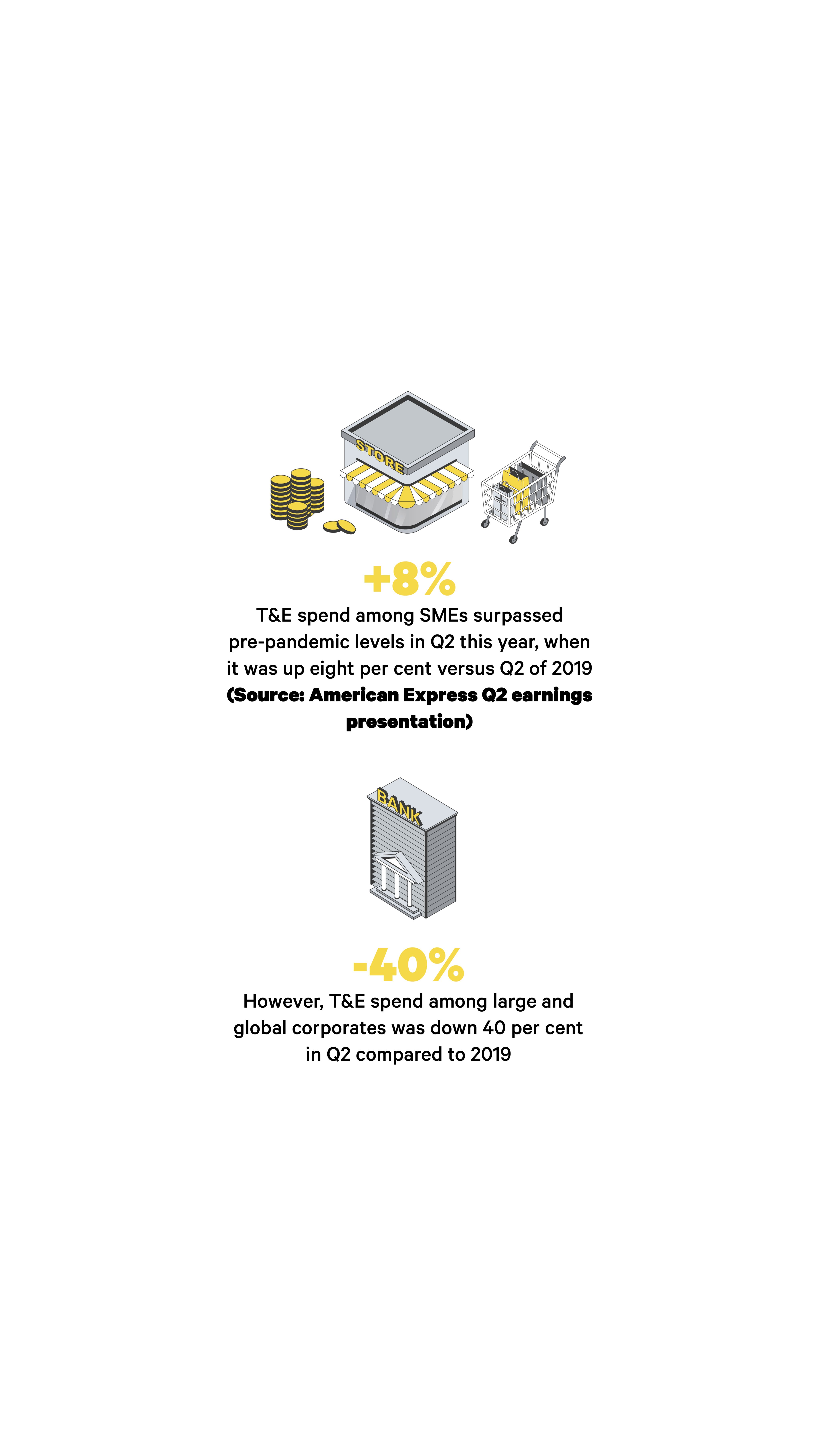 Mixed picture: Spending on travel and entertainment among SMEs surpassed pre-pandemic levels in the second quarter of the year but was down 40 per cent among large and global corporates – more evidence that it was the more agile small business sector that spearheaded business travel recovery post-Covid