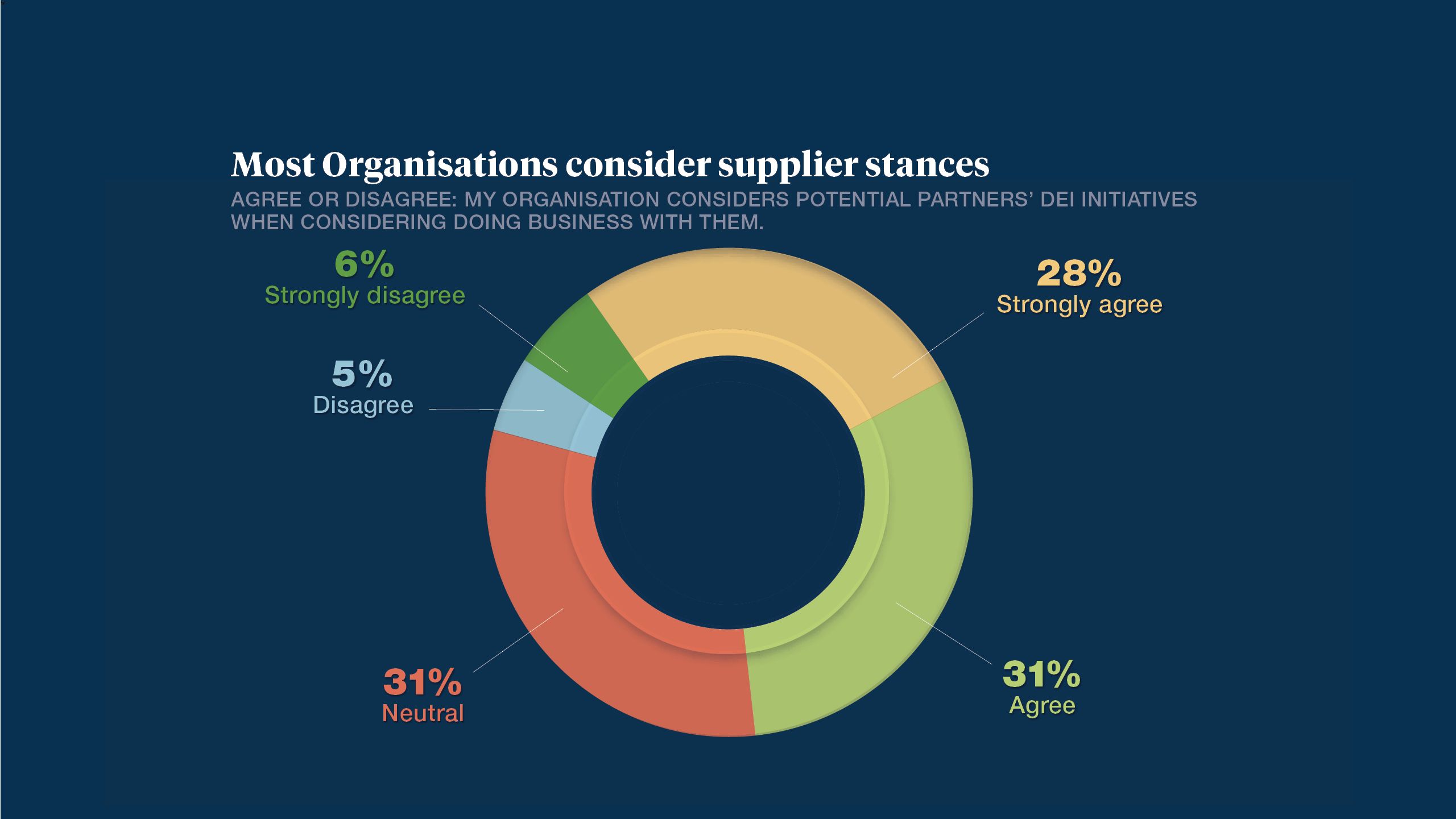 Still, nearly one in three respondents did not have any supplier partnership selections based on DE&I efforts.