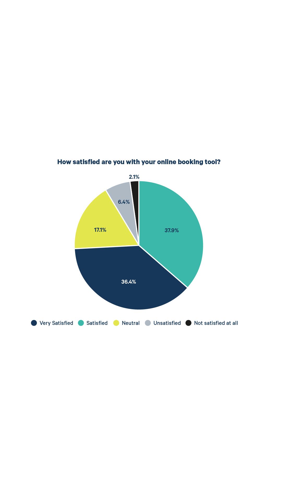 Our survey showed that travel buyers are largely happy with their online booking tools with almost three-quarters of buyers saying they were satisfied or very satisfied. Just 2 per cent said they were totally unsatisfied with their chosen tool.